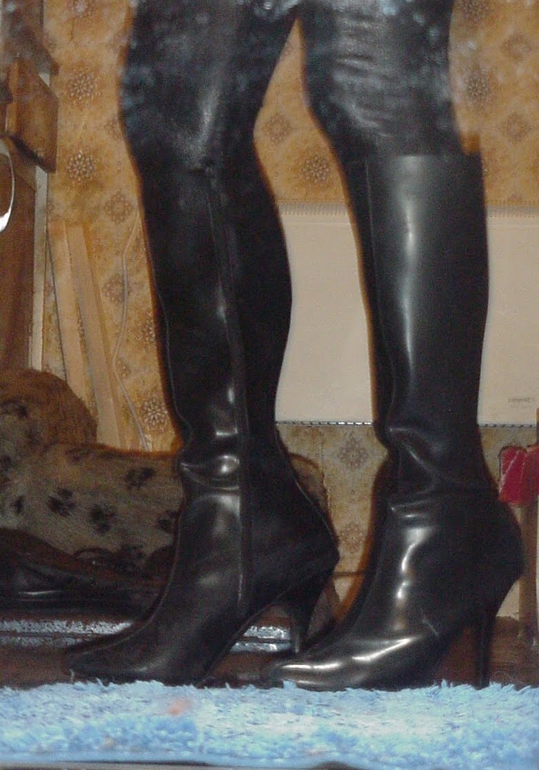 I was exchanging emails with a guy at the end of last week, who's into thighboots. As I've written on here before I've got a bit of a thing about boots, including high-heel ones. So we had quite a friendly chat about it and the upshot was that I decided to take some pics of me wearing mine and upload them: they're knee-high rubber stilettos! It's something I'd had half in mind to do for a while in fact. So I set up a little mini photo-shoot with the boots, some black wet-look leggings and a corset to complete the ensemble.